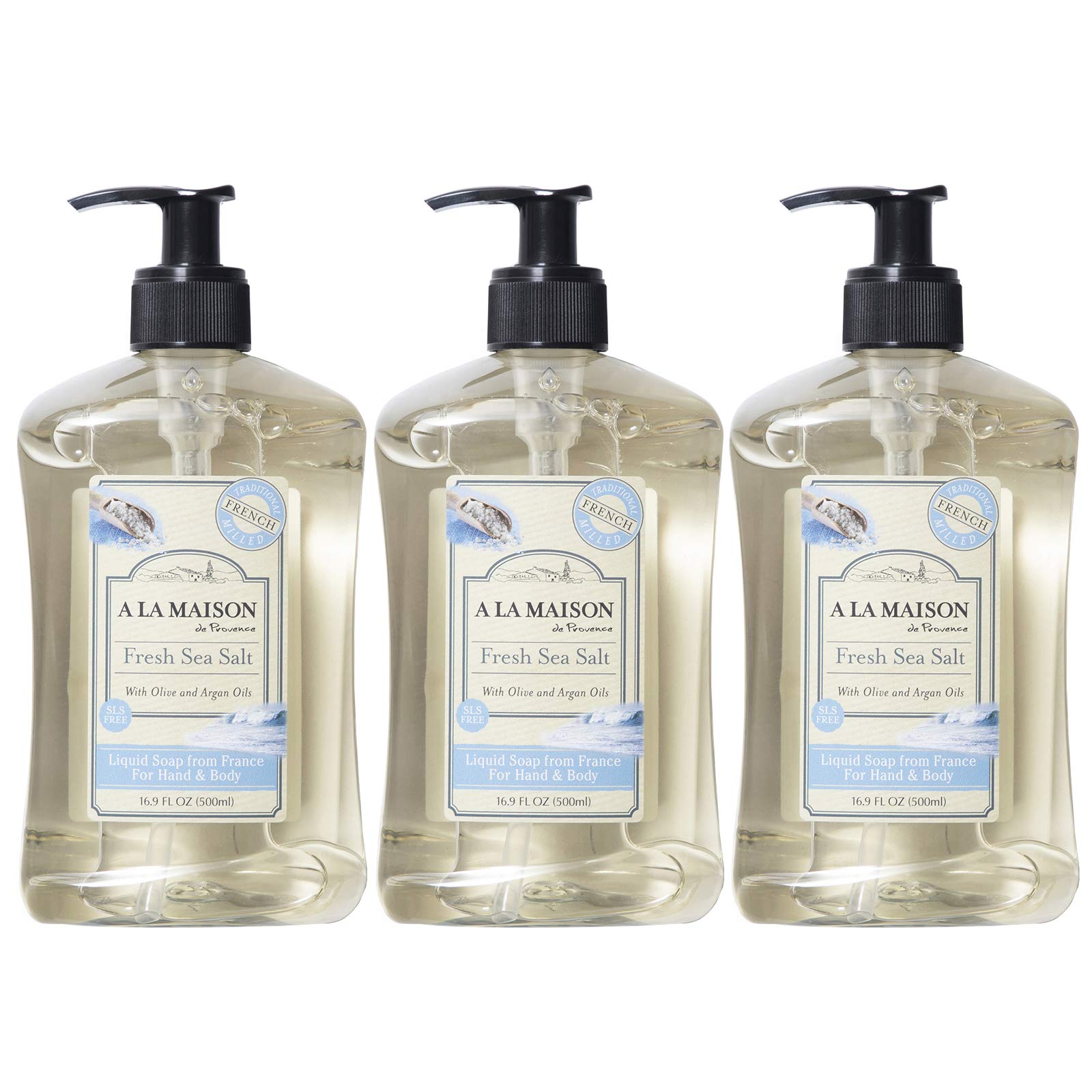 A LA MAISON Liquid Soap, Fresh Sea Salt - Uses: Hand and Body, Triple Milled, Essential Oils, Biodegradable, Plant Based, Vegan, Cruelty-Free, Alcohol & Paraben Free (16.9 oz, 3 Pack)
