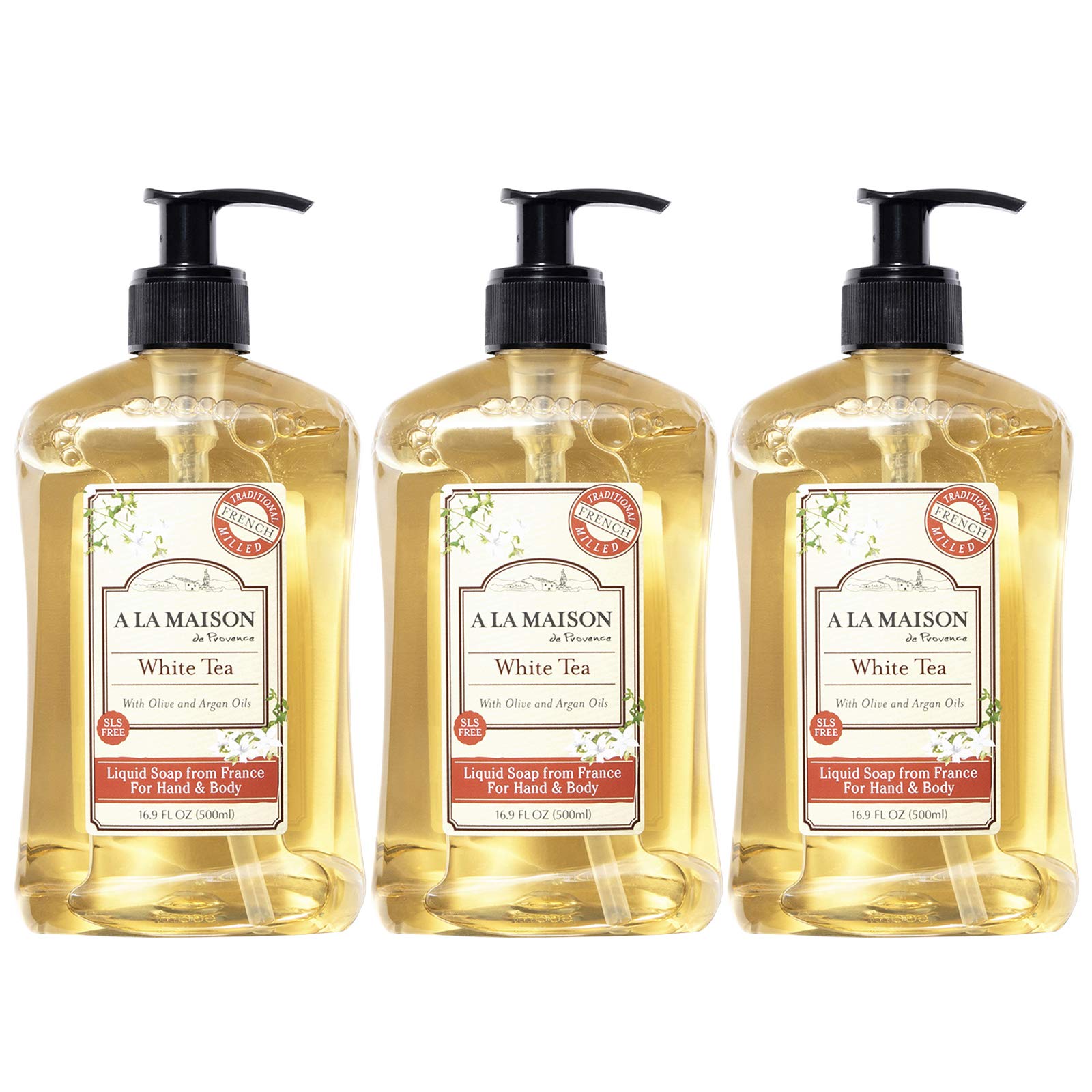 A LA MAISON Liquid Soap, White Tea - Uses: Hand and Body, Triple Milled, Essential Oils, Biodegradable, Plant Based, Vegan, Cruelty-Free, Alcohol & Paraben Free (16.9 oz, 3 Pack)