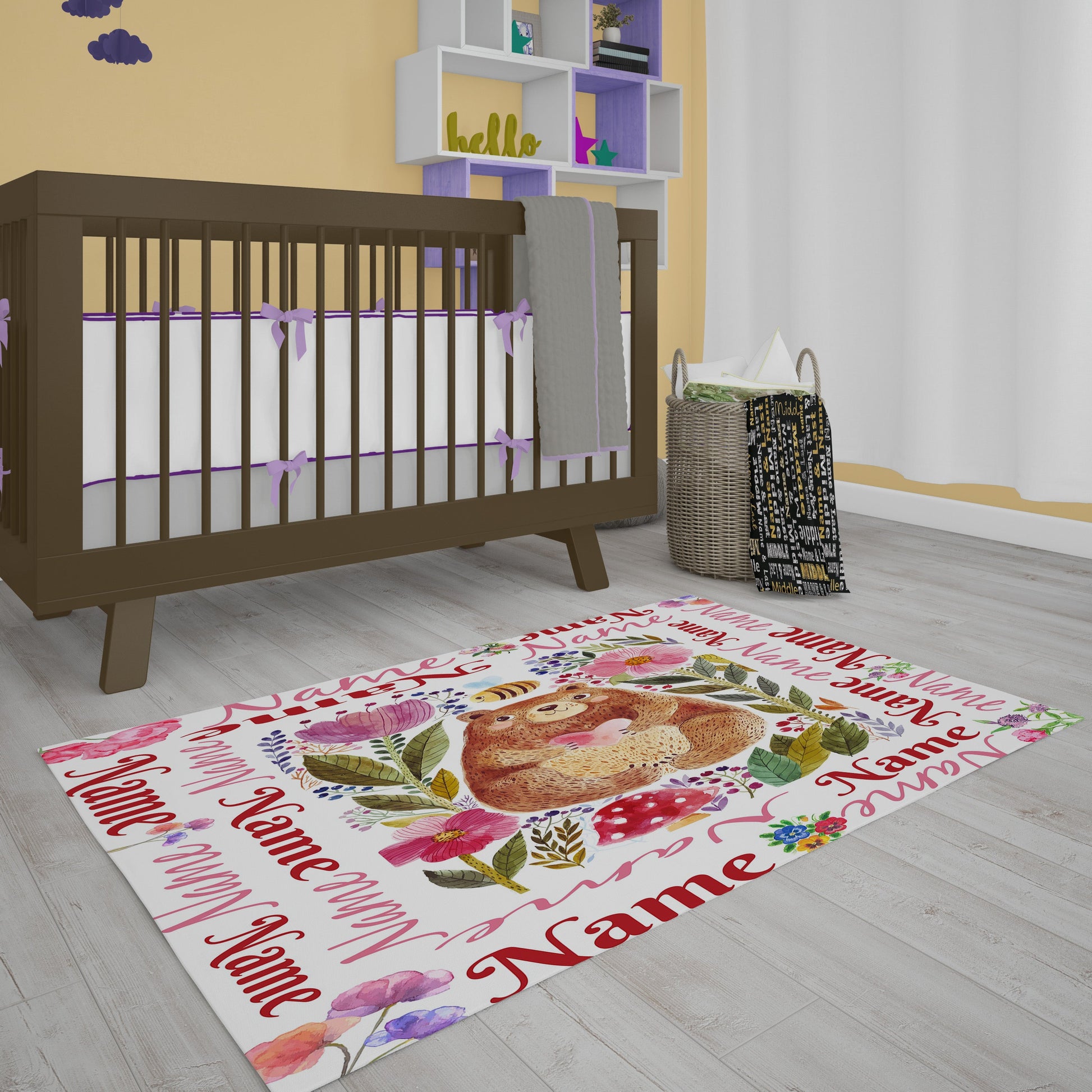 Give the last touch to babies Room Decor with the Line of Products that we offer. Area Rugs Ideal for high traffic areas that give your space a touch of life and color to your Home. Crafted from 100% Polyester fibers with a cozy, flat-weave design which can handle busy homes with children and pets; rug is anti-static, moisture-resistant, and fire retardant.