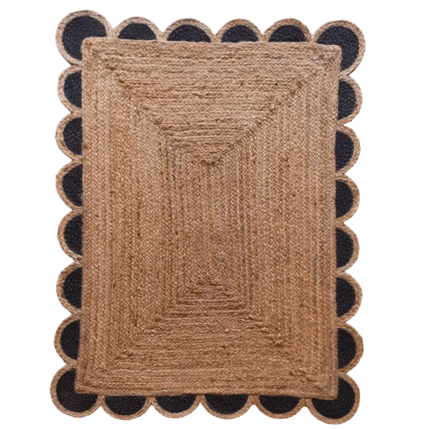 - This Black and Natural Scallop Jute Rug is a beautifully crafted, eco-friendly rug that will add a touch of sophistication and texture to any room.