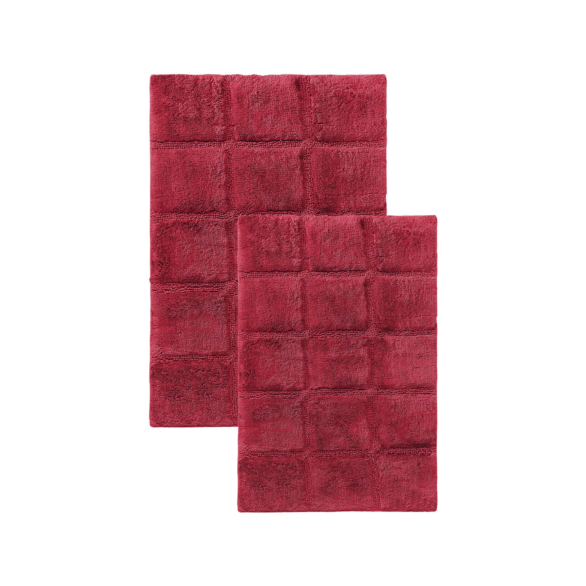 Solid Cotton 2 Piece Checkered Non Slip Bath Rug Set