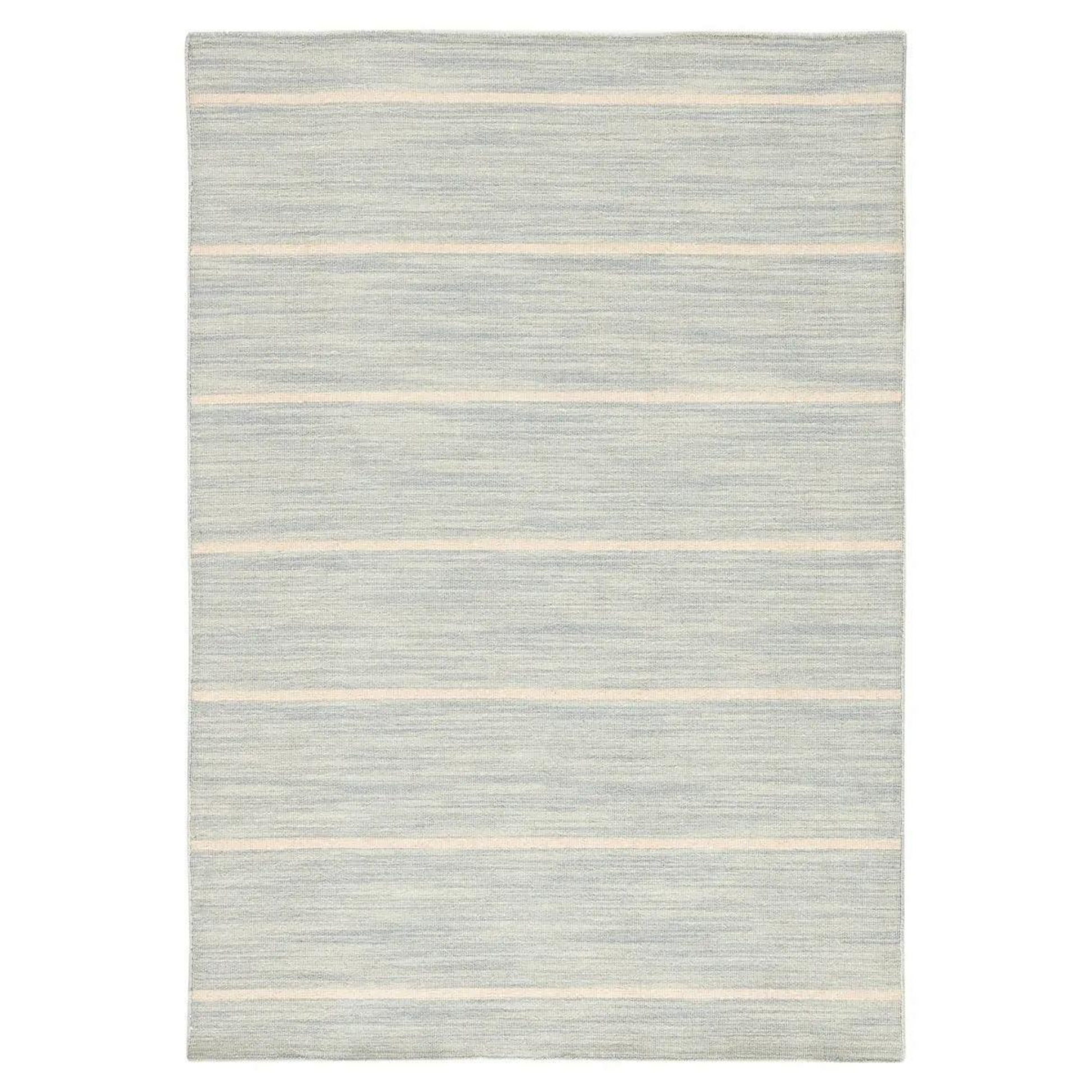 Classic with a bold stripe, this soft blue and cool white flatweave area rug lends traditional charm to any space. This casual layer offers reversible use for easy care and timeless durability.