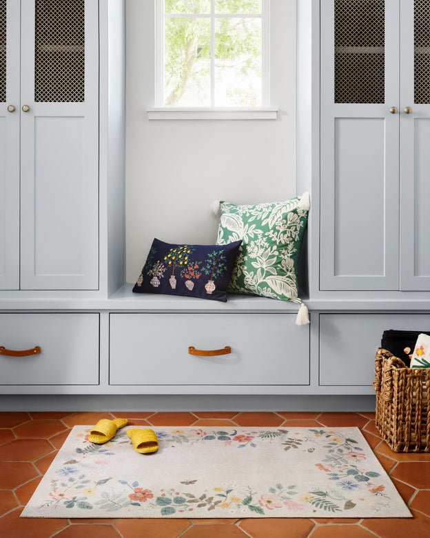 Add a dose of colorful florals to any corner with a rug from the Atelier Collection! Created with a skid-resistant backer, perfect for in front of the sink or in an entryway, with vivid colors achieved through printing on a power-loomed base. Part of the Rifle Paper Co × Loloi collaboration.
