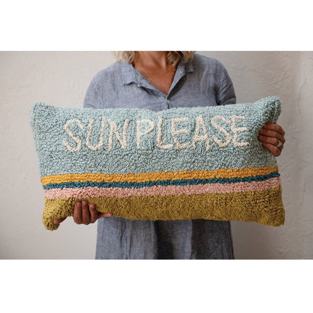 Woven Cotton Punch Hook Lumbar Pillow, Multi Color "Sun Please"