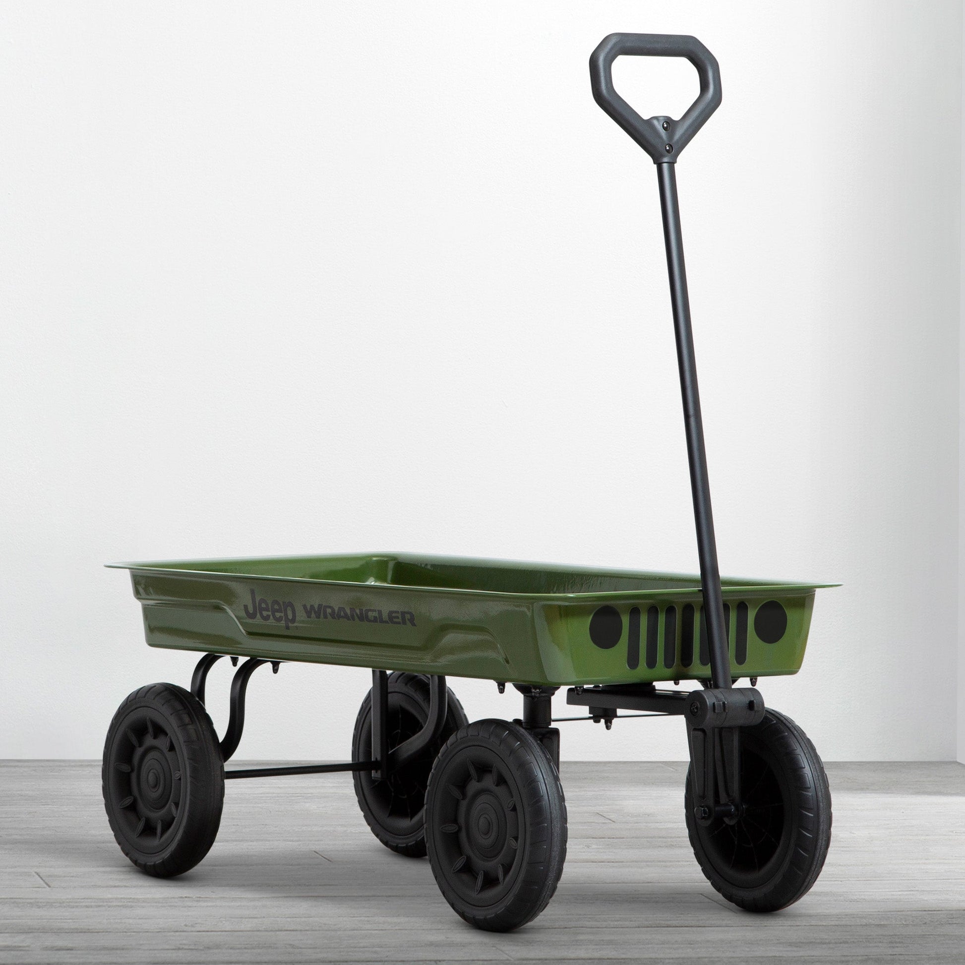 A classic for a reason, the Jeep Wrangler Classic Wagon by Delta Children is built for generations of family fun and exploring. Made with a durable steel frame and puncture-proof, all-terrain 9-inch rubber wheels that easily roll over pavement, grass or gravel, this wagon effortlessly provides a smooth ride. Its extra-long handle folds under for storage and a controlled turning radius prevents tipping. Use the Jeep Wrangler Classic Wagon by Delta Children to explore with your little one or use it at the farmers’ market, while gardening or more.